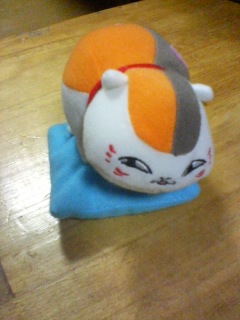 これね、くじの景品であてた手のひらサイズのにゃんこ先生のぬいぐるみね。玄関の下駄箱の上に置いといたんだけど、いつの間にか二階の小具之介の自室に移動してんの。どこのナスビの仕業かはわかってるんだけど、着替えようと部屋の電気を付けて床にこいつが転がってたらちょっとびっくりする。