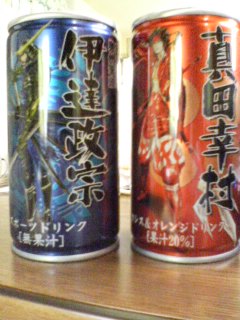 オタ友にもらった。佐助はいなかったってさ。筆頭はスポーツドリンク、真田はカシスオレンジ。チョカベがグレープでオクラが緑茶、こじゅがウーロン茶らしいよ。