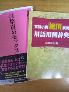 やると言ったからにはやりますよ、小具之介。買うと言ったからには買いますよ、小具之介。手元にある二冊、どうしようかと既にもてあまし気味です、ってのはまああれですが、普通に参考になるから困ってます。ああなるほどこういうのが言葉攻めなのか、と。活かせるように頑張りたいところです。